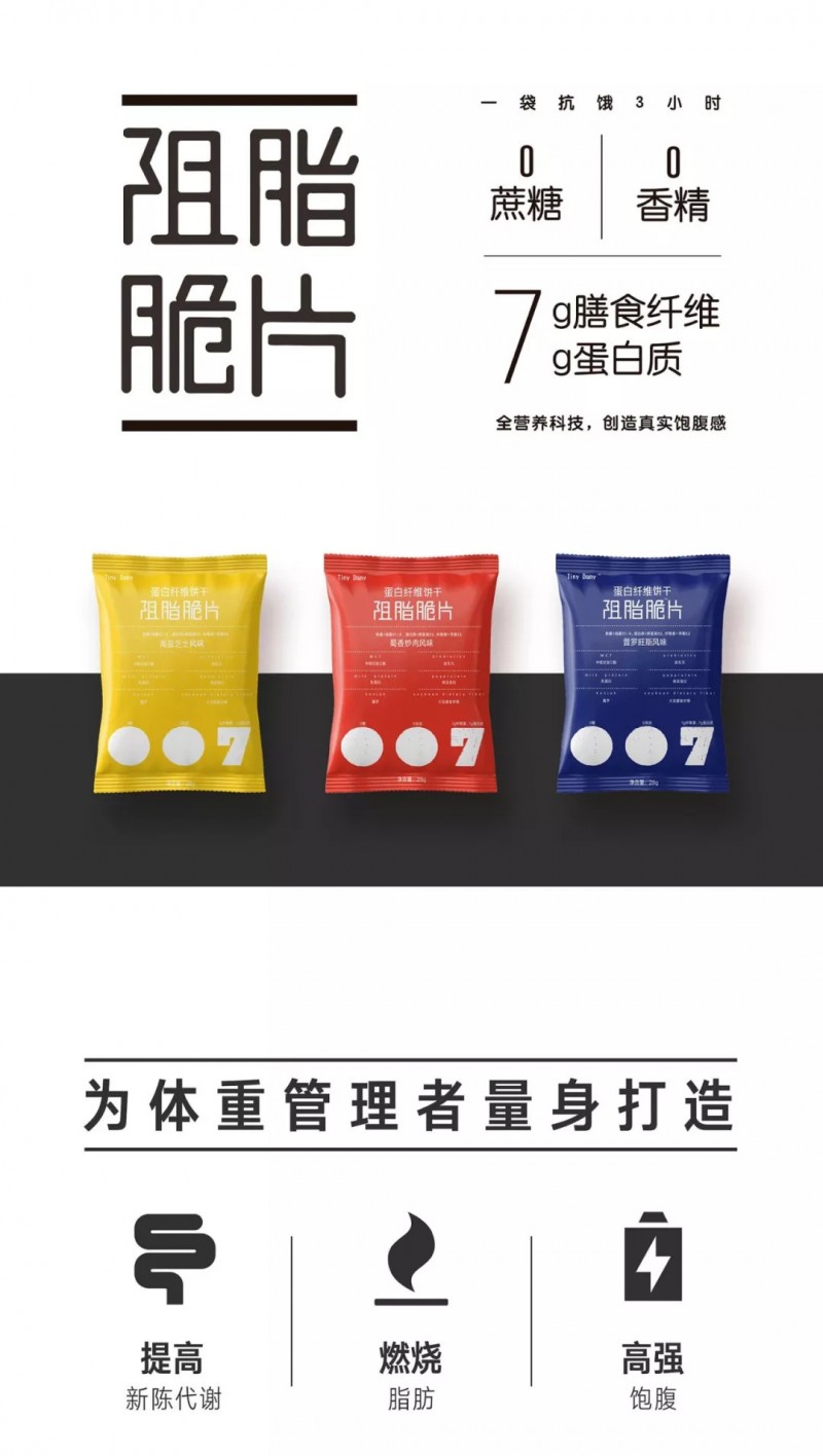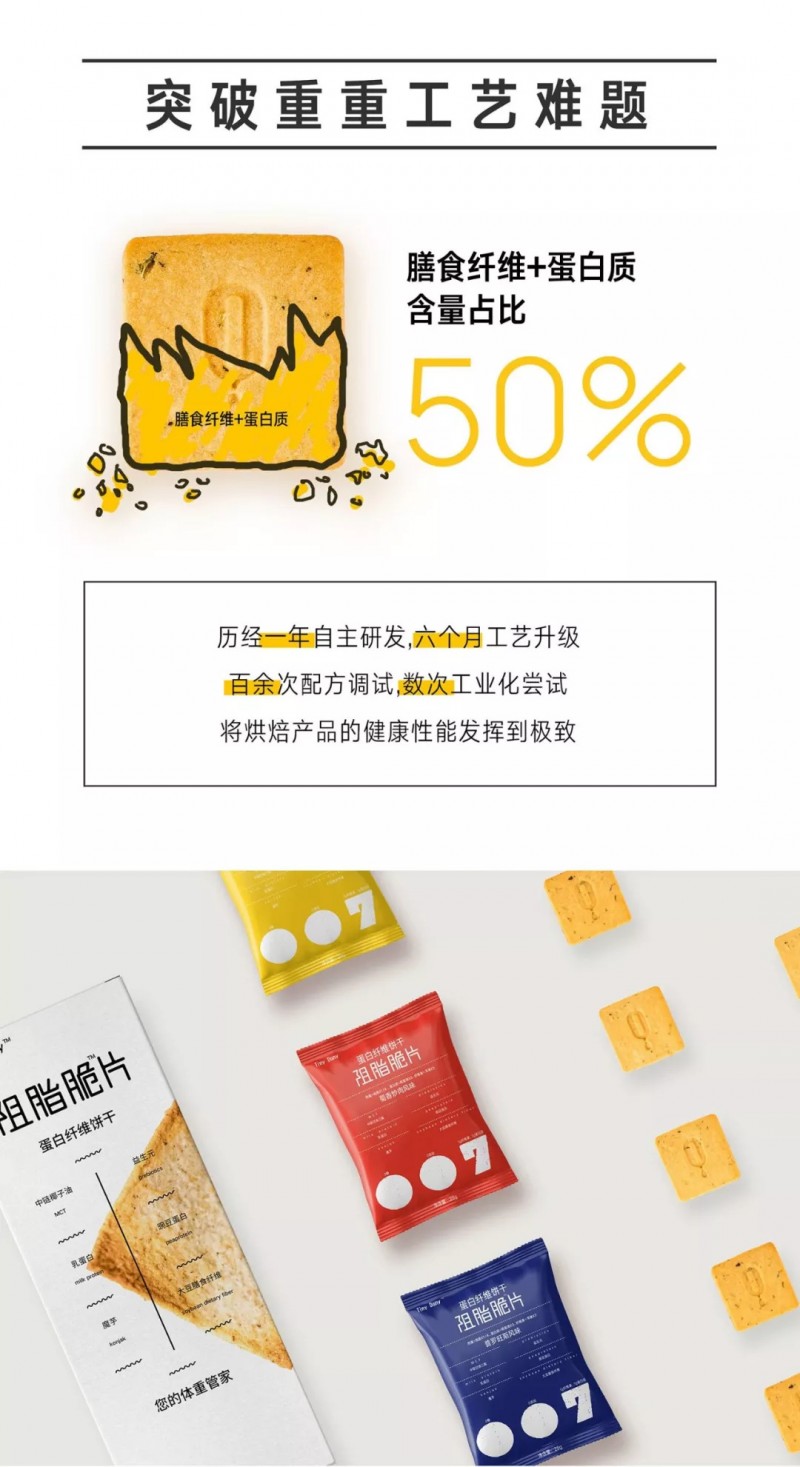 于是代号007的阻脂脆片出现了,0g蔗糖添加,0g香精/色素/防腐剂添加,7g膳食纤维+7g蛋白质…光听名字,感觉就瘦了。