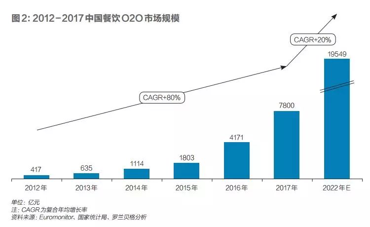 互联网的助力带动餐饮O2O(Online to Offline,线上到线下)进入高速发展阶段,为行业增长不断带来新的机会。生活节奏快、场景碎片化的特点使得消费者对快速、便利性的需求增加;同时,外卖餐饮品牌、O2O平台、餐饮管理服务商及时顺应了消费需求,并将业务承接拓展到消费者的各个生活领域;随着物流配送在管理、技术等方面的不断优化升级,餐饮O2O的市场将继续长足发展。