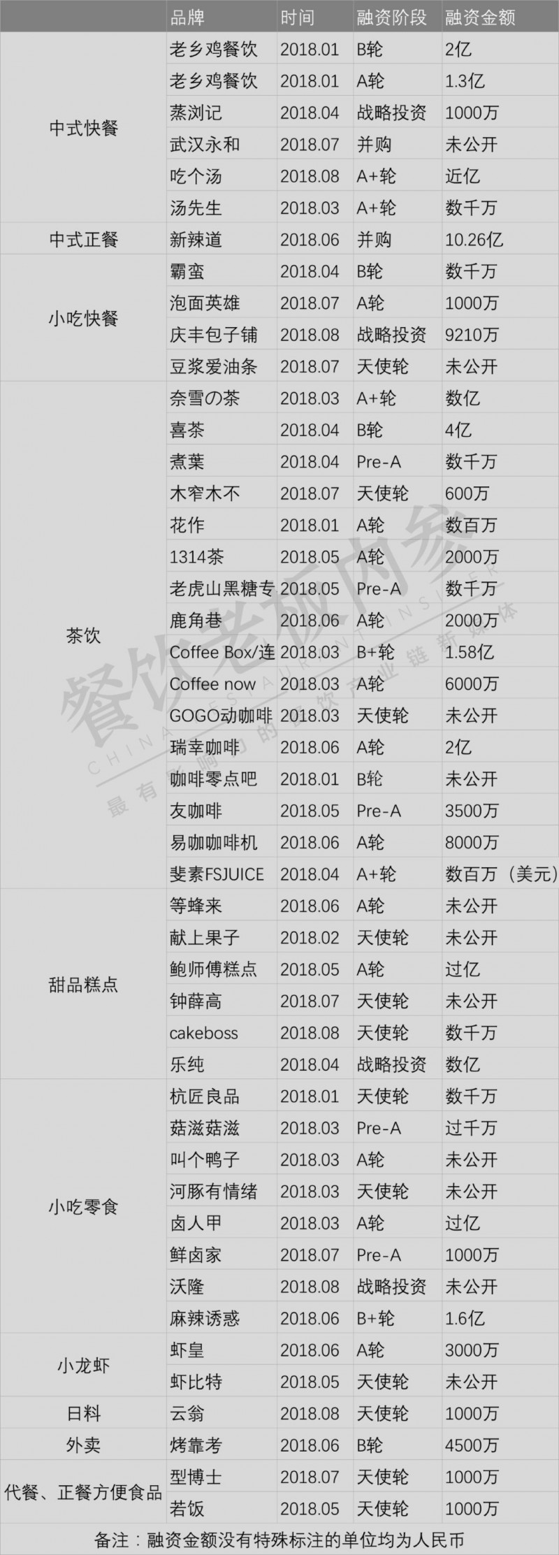 此次榜上出现频次最高的老乡鸡,今年年初完成A、B两轮共计3.3亿人民币的融资,7月则变身为投资方,并购另一家中式快餐品牌武汉永和。