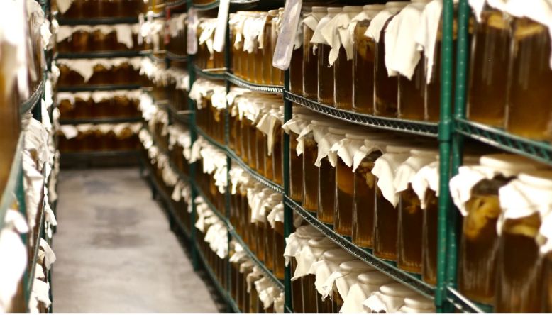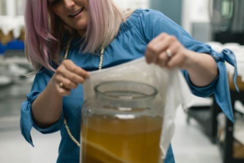 Health-Ade通过反渗透系统过滤水,从而去除氯、氟化物、抗生素等物质,以免破坏用于制造康普茶的微生物。之后用过滤水来酿造有机绿茶和红茶,加糖,待冷却后倒入2.5加仑的玻璃瓶,添加SCOBY(细菌和酵母的共生菌种),使用T恤类材质的面料封盖住瓶口,并在80 --85˚F下发酵一周,同时监控糖含量、pH、风味等因素。