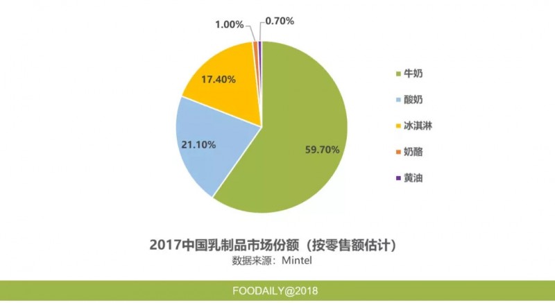 市场上的纯奶品牌繁多,类型多样,有机奶、高端奶也层出不穷。Mintel指出,截至2017年,全国龙头乳企伊利和蒙牛旗下的高端产品占比均达到近50%。2018年,这两大领军企业继续发力高端明星产品系列,尤其借助高端线打入新领域,包括新产品、新场合和新客群等。