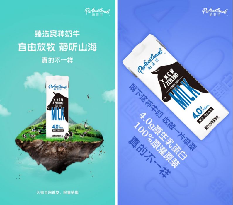 Foodaily每日食品网(ID:foodaily)注意到,近日就有这样一款主打草饲概念的进口牛奶在天猫平台首发,它就是由大洋洲乳业公司(Oceania Dairy Limited) 依托新西兰黄金奶源带打造的高端草饲牛奶—Perfectlands柏菲兰。大洋洲乳业公司是全球最大的一体化乳业生产基地之一,以世界顶级的黄金牧场、珍稀奶源及严苛标准而著称,这也铸就了柏菲兰的高端品质。