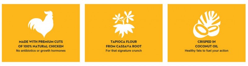 Wilde与Global Animal Partnership合作,充分关注动物福利,人工饲养的鸡不含抗生素和生长激素,从而保证能够提供最天然、最优质的鸡肉。使用来自木薯根的无麸质木薯粉,不含谷物也能产生令人满意的薯片脆度。