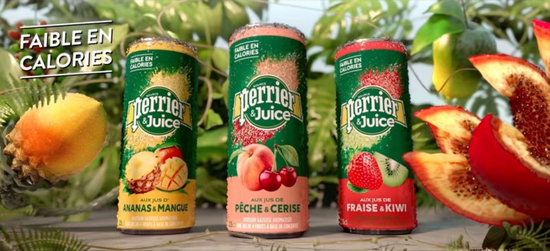 Nestlé Waters凭借其独特的市场定位和优势,也是全面打入日益增长的气泡水市场。近期,Nestlé Waters在美国洛杉矶地区发售了全新的Perrier&Juice气泡水系列。