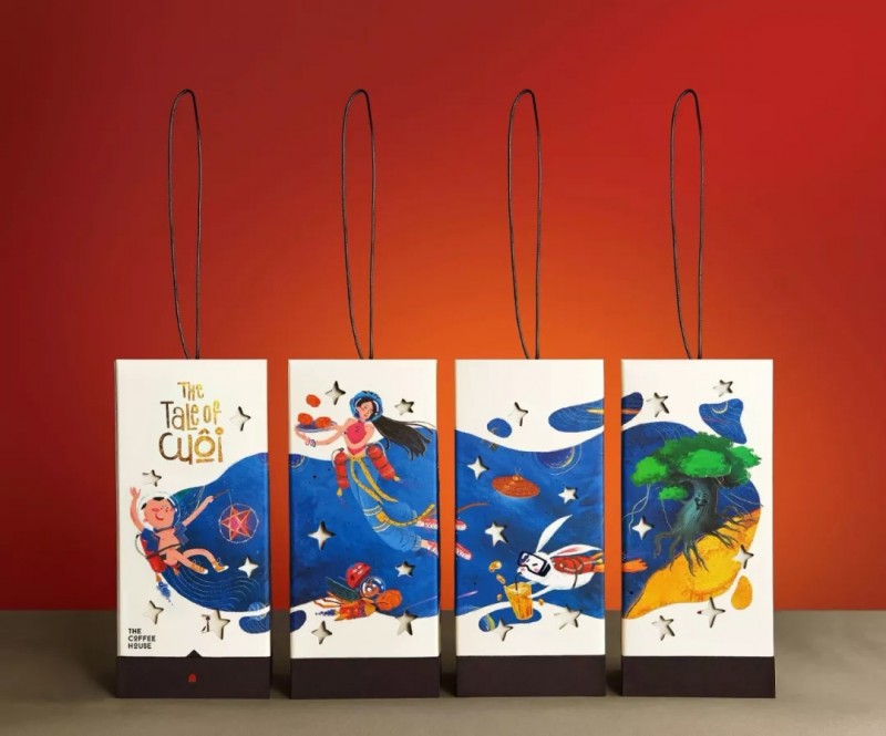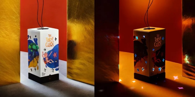 这是为越南快速发展的咖啡连锁品牌The Coffee House设计的限量版月饼包装。虽然月饼包装趋势越来越倾向于精致美学,但这个设计团队选择彰显这个节日的文化精神。盒子本身就是一个手提灯笼,鼓励孩子们在街区漫步,唱歌,享受月饼和童年的甜美味道。