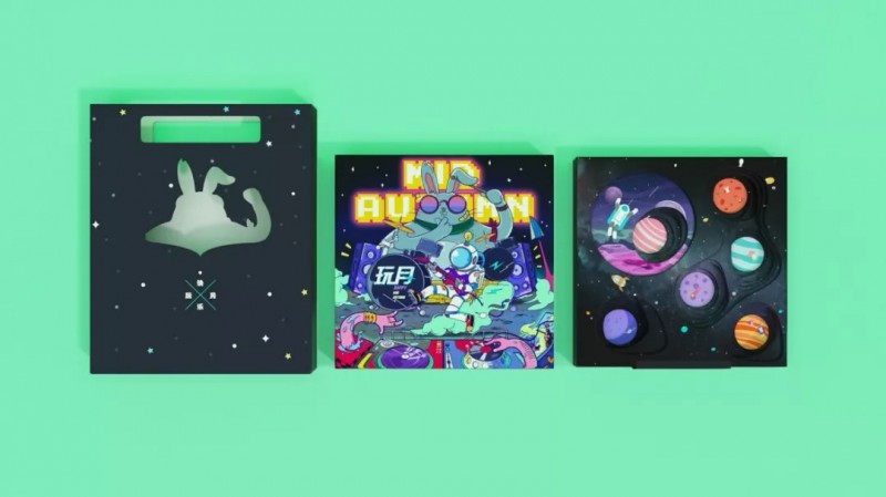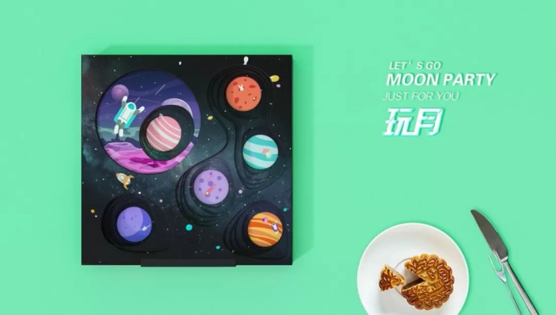 传统节日里玩出新花样,一盒真正对味年轻人的月饼。潮酷插画风格强烈,礼盒利用星球陨坑凹凸造型展现裸眼3D空间,一秒钟将你带入太空世界!