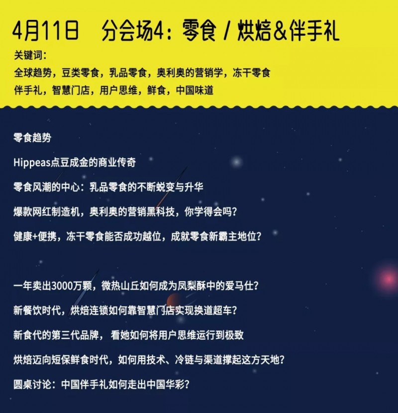 1)创新产品体验:聚焦饮料、乳品、烘焙、零食、功能性食品、餐饮、糖果&巧克力等7大品类,精选自北美、欧洲、亚太三大地区的2400+sku创新产品,覆盖从细分品类到特色主题,从明星品牌到消费场景的产品案例剖析、现场品鉴、新零售体验;