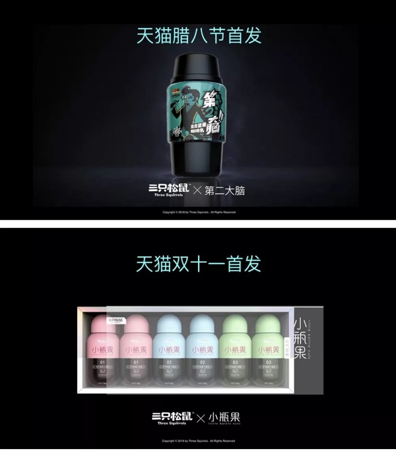 创新无界,坚果从初加工走向精深多元方向是要站在行业的角度去看坚果。所以,三只松鼠酝酿了三年,研发了两年的“第二大脑”混合坚果复合蛋白咖啡/发酵杏梅风味乳将于腊八天猫首发。