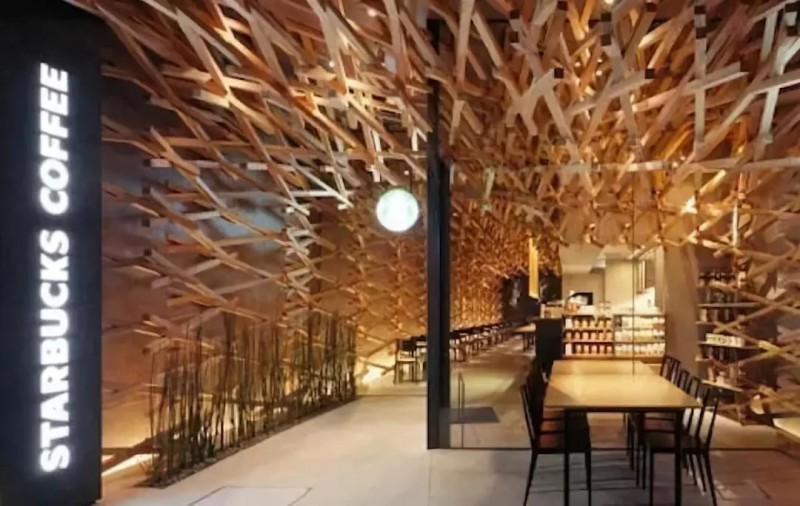 当人们造访这座由数千个木条构成的空间时,就会感受与其他星巴克门店截然不同的氛围,能联想起神社内的宁静。