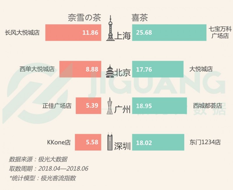 l 上海市坐拥全国客流量最大的喜茶店和奈雪の茶店,两大网红奶茶在上海极受追捧