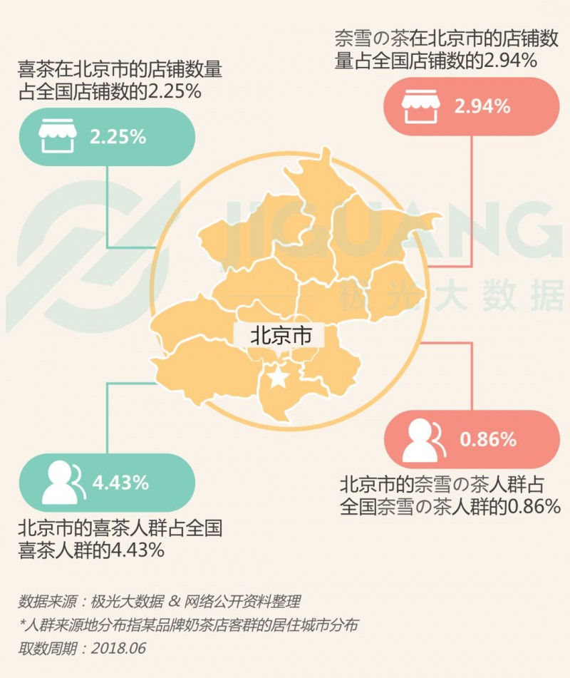 喜茶北京店铺数量仅占全国2.25%,但收获了全国4.43%的喜茶人群。