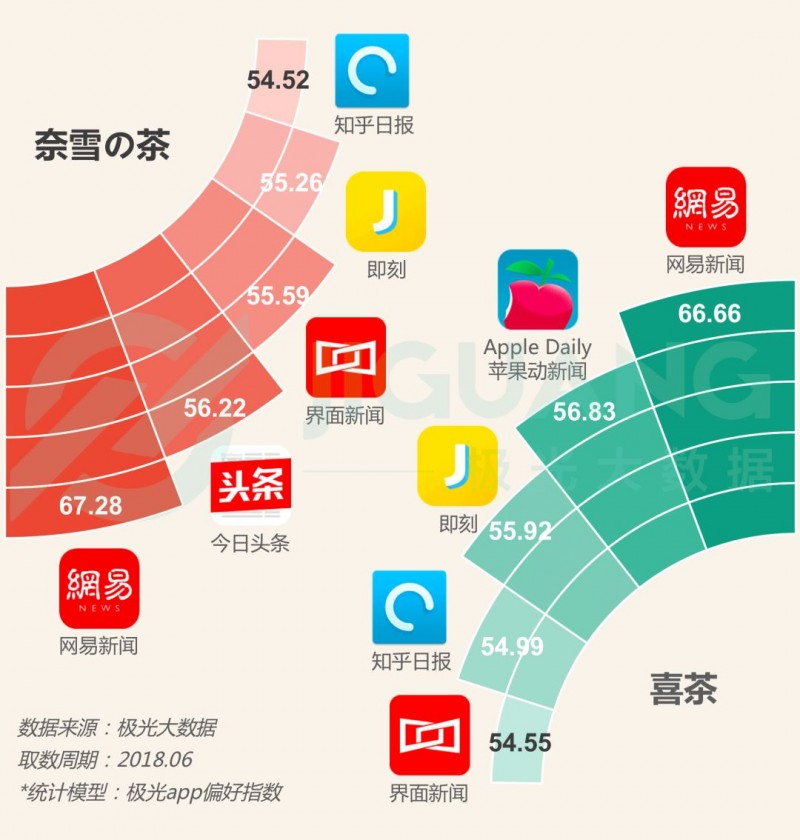 『 喜茶 』& 『奈雪の茶』用户综合新闻app偏好度