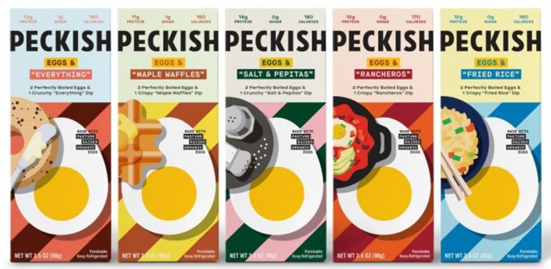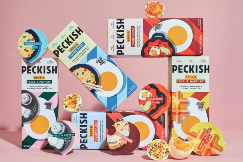 Peckish是第一个将鸡蛋与烹饪风味的蘸酱相结合的品牌,产品不仅具有略微柔软的煮熟鸡蛋的口感,同时又能保证食品安全,是来自加利福尼亚的品牌孵化器和投资者Sonoma Brands的创新之作,为满足人们对更新鲜、更简单、更有营养的便携式蛋白质零食的需求,采用可堆叠的包装,以明亮、多彩为特色,旨在吸引千禧一代。