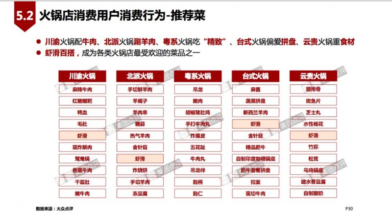 “五大派系”的火锅各有各的推荐菜,如图中,跟着做就不会错。没想到,虾滑百搭,成为各类火锅店最受欢迎的菜品之一。