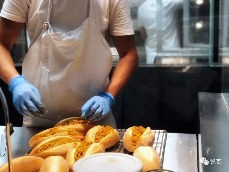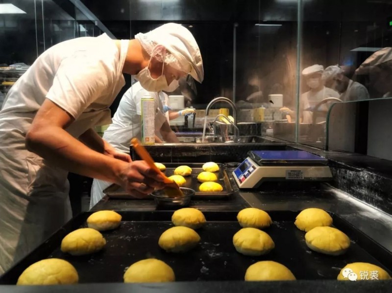 而二楼尽头,则是热麦实验室,用户可通过透明玻璃观赏欧包的整个制作过程。