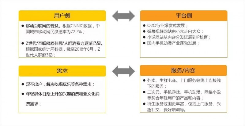 受用户上网注意力变化的影响,宅文化逐渐延展到移动直播、短视频、兴趣社交等领域。