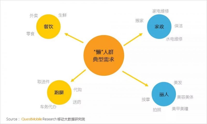 “懒”人群指的是虽不出门,但用“手机”指挥千万商家上门为他服务的人群,主要为外送服务和上门服务。