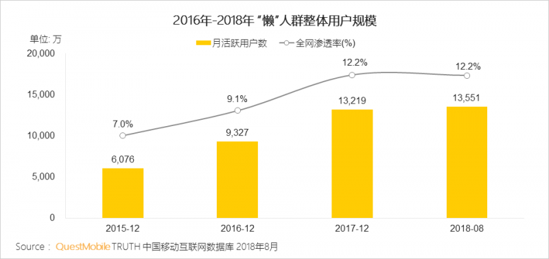 2、“懒”人群整体用户规模破亿,呈稳定增长趋势