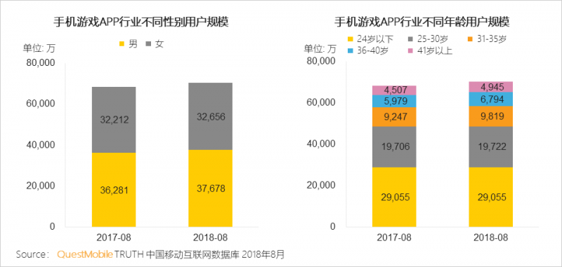 根据数据,30岁以上手机游戏APP用户规模同比增长超1800万,增长贡献度为98%;