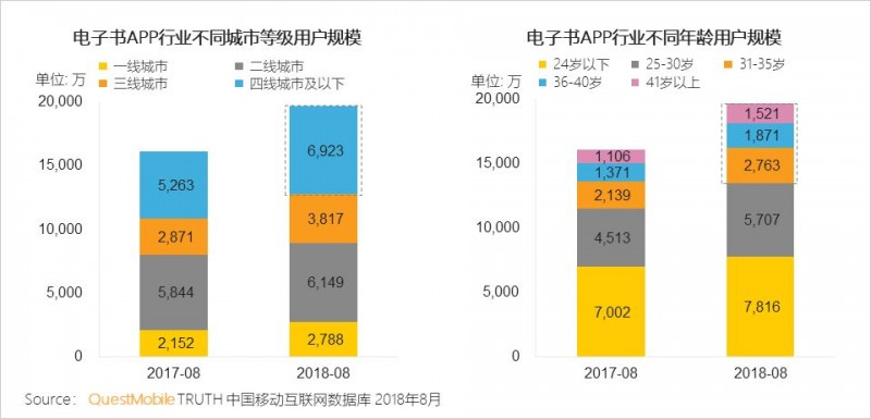 另外,四线及以下城市的电子书APP用户规模同比增长超1600万,增长贡献度为47%。