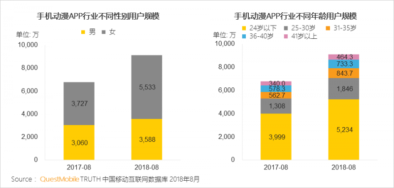 24岁以下手机动漫APP用户规模同比增长超1200万,增长贡献度为53%;