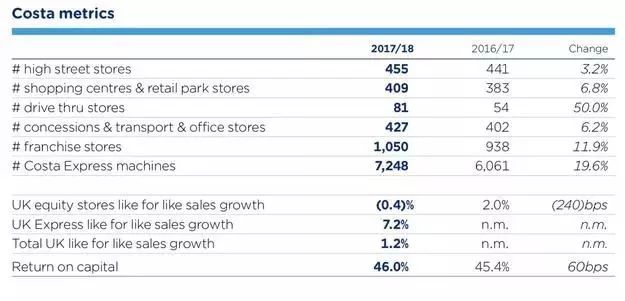 Costa的英国市场门店策略与星巴克中国不同,门店类型更加多元化业态复合,满足多个消费者的场景。尤其是Costa的ExpressMachine有7248台,FranchiseStore有1050家,英国本土的业绩保持了稳健的持续增长。整体来说,Costa的经营策略更加的稳健,未来将会是中国市场的强劲的竞争对手。