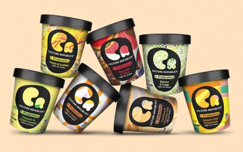 而就在近日,快消巨头联合利华率先出售,宣布推出了名为Culture Republick的益生菌冰淇淋新品牌,并且声称这是第一款含有益生菌的高端冰淇淋。