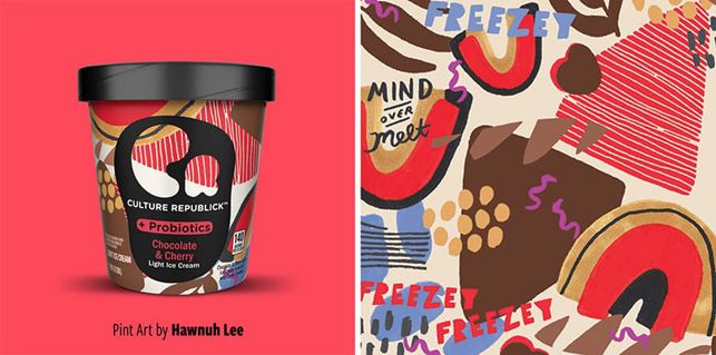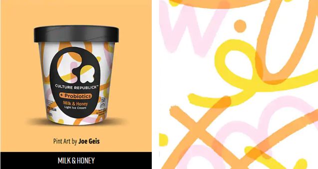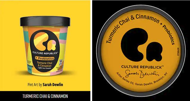 一款融合了姜黄、印度奶茶风味和肉桂糖浆的轻脂冰淇淋。包装由布鲁克林艺术家Sarah Dewlin设计,他的专攻是独特的几何形状与构图,利用那些具有天然美感或瑕疵的图案进行创作。
