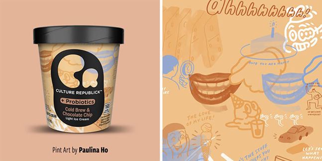 此款冰淇淋采用公平贸易认可的巴西和哥伦比亚咖啡提取物制成,每口都含有满满的巧克力片。包装由Paulina Ho设计打造,他是一位出生于加利福尼亚州、在德克萨斯州长大、在纽约工作的艺术家,擅长融合各种不同的图像和符号,让人们联想起来产生遐想,从而创造出更多的意义。