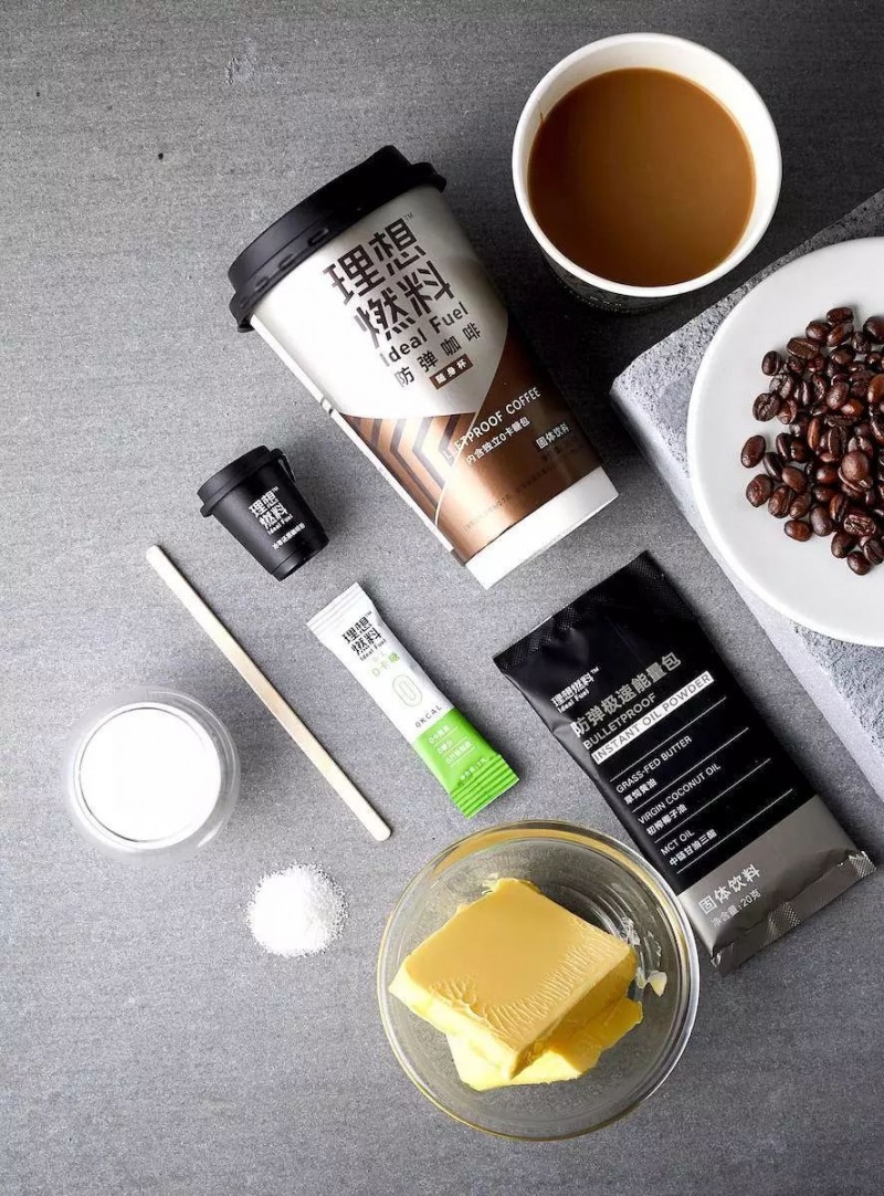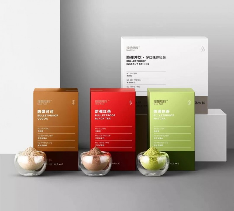 “理想燃料”,这个更聚焦于专业功能级产品的品牌线,包括了明星产品防弹咖啡、生酮能量棒和防弹冲饮系列产品。