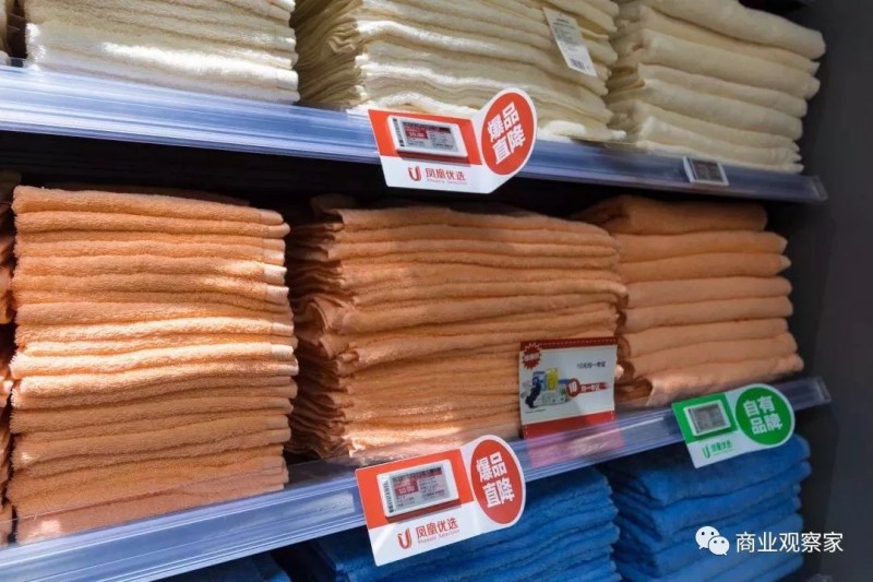 从门店陈列商品构成来看,凤凰优选社区超市主要做迎合消费升级的品质商品。比如挪威深海鳕鱼、加拿大菜籽油、英国精酿啤酒、五常稻米、新疆阿瓦提长绒棉毛巾等等。