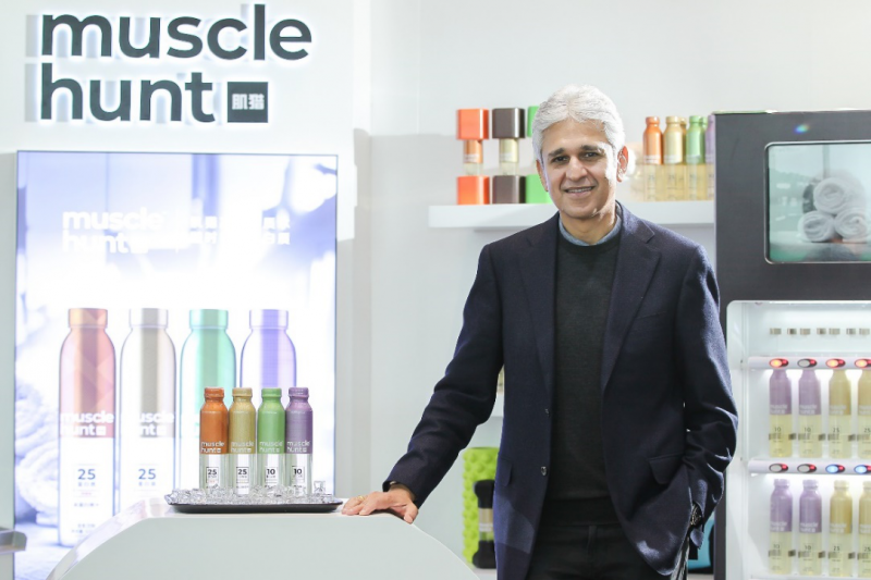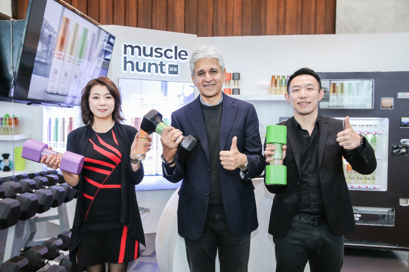 雀巢大中华区首席营销官江妮妮(左)、雀巢大中华区董事长兼首席执行官罗士德(中)、雀巢大中华区创新与改良总监王思淳(右)在“MuscleHunt肌猎”展台合影