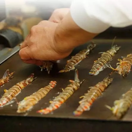 此外,在制作过程中还要仔细察看当天虾的状态,并据此对火候和时间进行微调;运用独一无二的高超手艺,做出好吃的虾饼。
