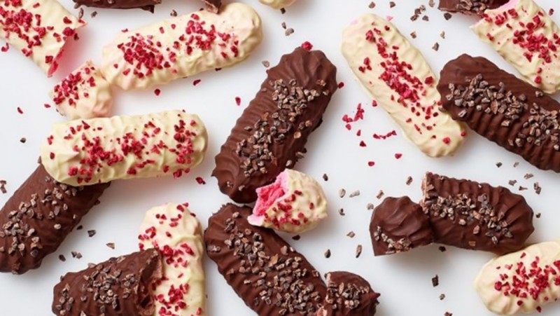 虽然现在抵制糖似乎成为主流,但甜所带来的愉悦感、治愈感是我们不得不承认的。英国品牌Flower&White则推出蛋白脆皮棒,主打“更甜美”。每支含100卡路里,以散养鸡蛋、嘉利宝巧克力和天然色素风味为原料,依照传统瑞士食谱采用慢烤制作而成。有多种口味,其中覆盆子蛋白棒表面洒上白巧克力&覆盆子碎,巧克力口味洒上黑巧克力&巧克力屑,柠檬口味的则洒上白巧克力&柠檬脆。