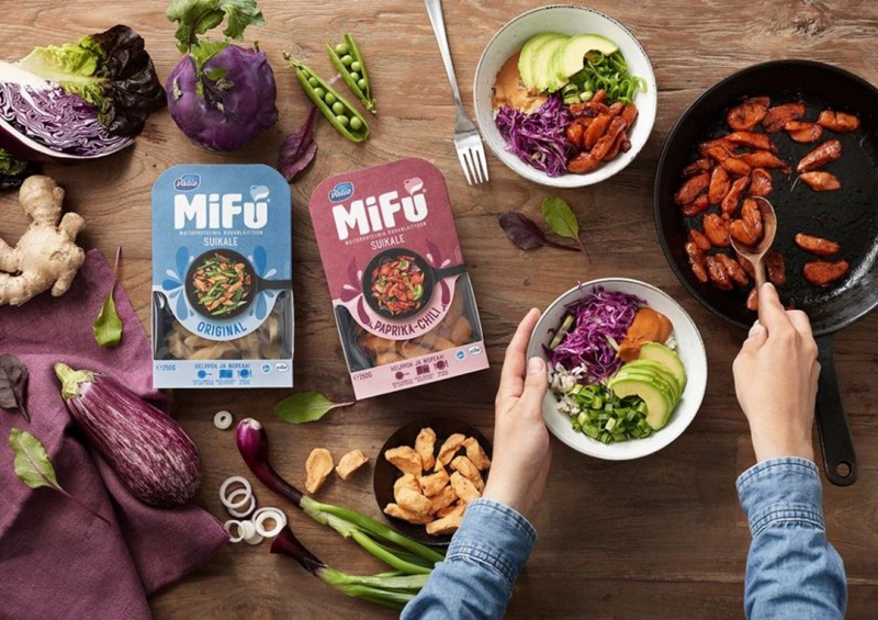 芬兰乳品品牌商Valio展示了他们的乳基产品ValioMiFU,这款产品以芬兰牛奶为原料、采用独特的专利技术制成即食条状产品来代替食谱中的肉类。