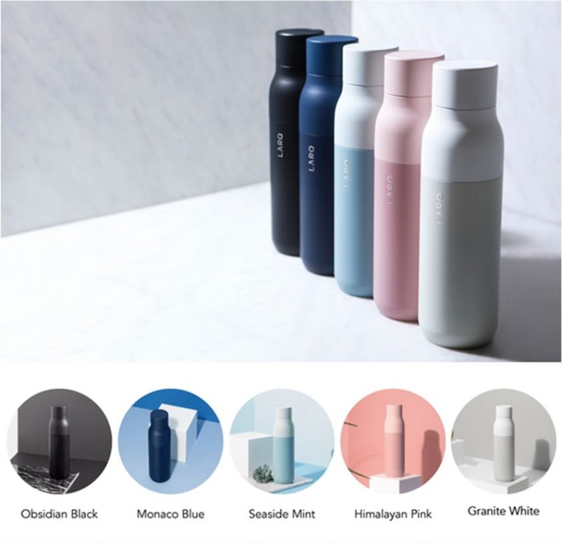 LARQ是一款可重复使用,集充电、隔热、自净、消毒等功能于一身的产品。水瓶容量为525毫升,高243毫米,直径69毫米,总重量13盎司,采用双层真空密封抛光不锈钢制成,不含双酚A和邻苯二甲酸盐,现有曜石黑,摩纳哥蓝,海滨薄荷,喜马拉雅粉,花岗岩白五种颜色可供购买,建议零售价95美元。