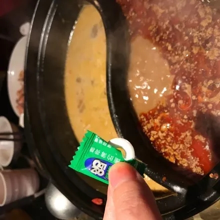 还有火锅店发明了这种吃法:进门就餐时就抓一把薄荷糖吧,在开锅后将它们洒进火锅底料,这样的味道别有一番风味。