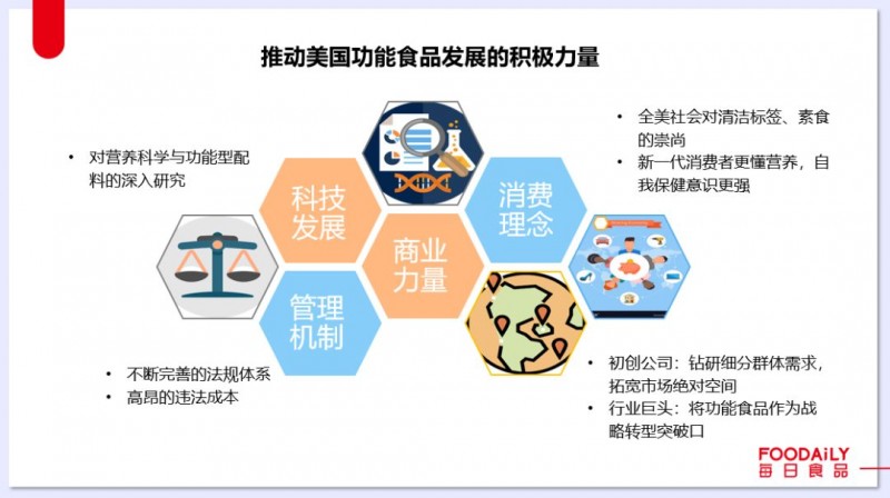 一般而言,谈到美国某个行业发展的成功因素,往往少不了对科技、制度和商业层面的考量,对于功能食品产业也是如此。