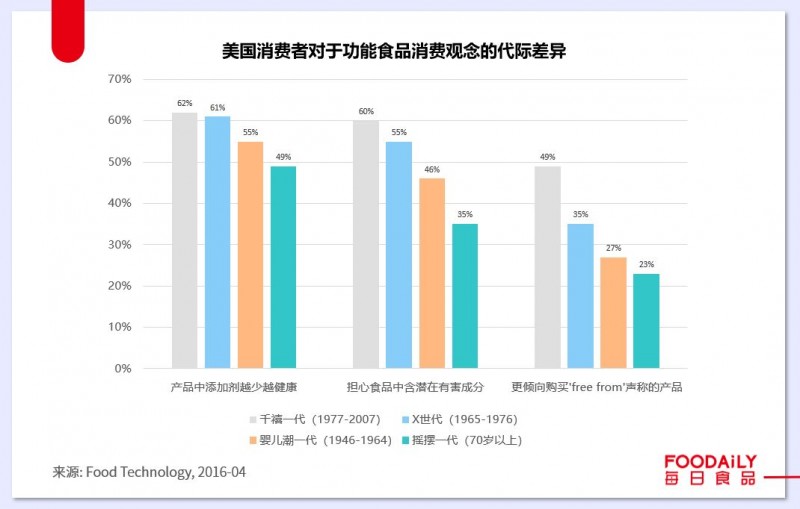 可以看出,不仅是中国在喊消费升级,美国同样面临着功能食品消费群体的代际更迭。从关注具体的生理功能,到彰显个性化的生活方式和理念,这是人类社会不断向前发展的必然结果。