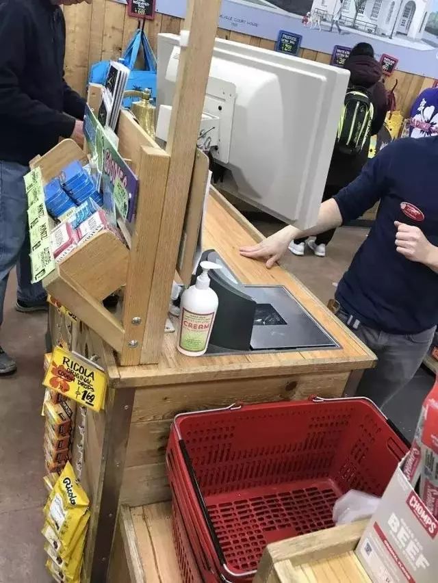 5.为了提高收银效率,收银台不设传送带,左边是顾客站的地方,右边入手推车,店员帮你在推车里扫描货品装袋,无需顾客一个个拿出来又放进去,所以Trader Joe’s(乔氏超市)所有商品都论个买,包括水果蔬菜,这也避免了称重的麻烦(美国是收银台称重),收银这里的设计跟Costco一样,效率很高。而且收银台是原木做的,视觉上也会觉得很亲切舒服。