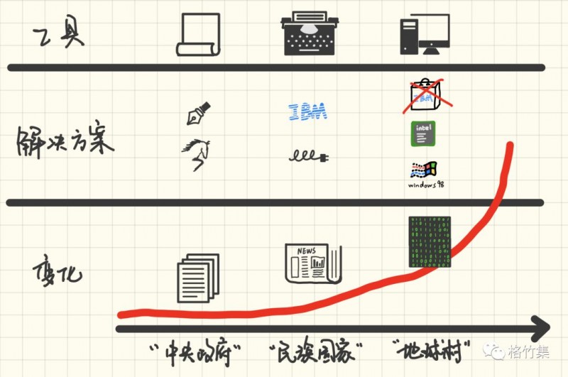 因为 IBM 错过了真正的变化,它只看到工具层面,却对工具所引发的人间事物变化熟视无睹。它真正为市场提供的不是商业机器,而是信息加工,先把想法变成文字,再成电子信息,由此参与建立新型信息社会。