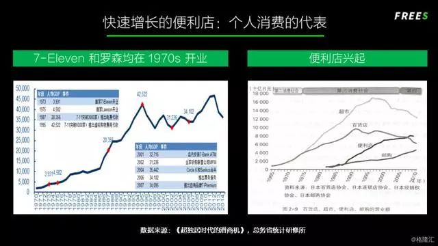 那么,问题来了:如果 20 人拥有一台自动售卖机是合理的密度,那中国有 13 亿人,是否应该有 5000 万台以上的自动售卖机?日本便利店于 1973 年起步,我们现在的经济发展跟日本七八十年代有一定的相似性,便利店在中国的天花板有多高?
