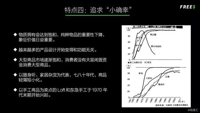 当物质过于丰富之后,纯粹物质属性的产品的重要性会下降,消费者会更倾向于购买小型产品或者精神属性强的产品。中国目前也处于这样的阶段。