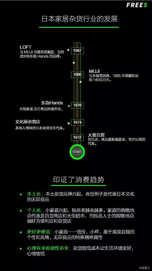 在日本,家居在 1980 年代复合增长率极高,在所有行业中排第二,仅次于保险。家居杂货源于日本本土文化。家居杂货体积很小、价格不高,满足了独居人士的消费需求,而且能够增添生活情趣、表达个性。