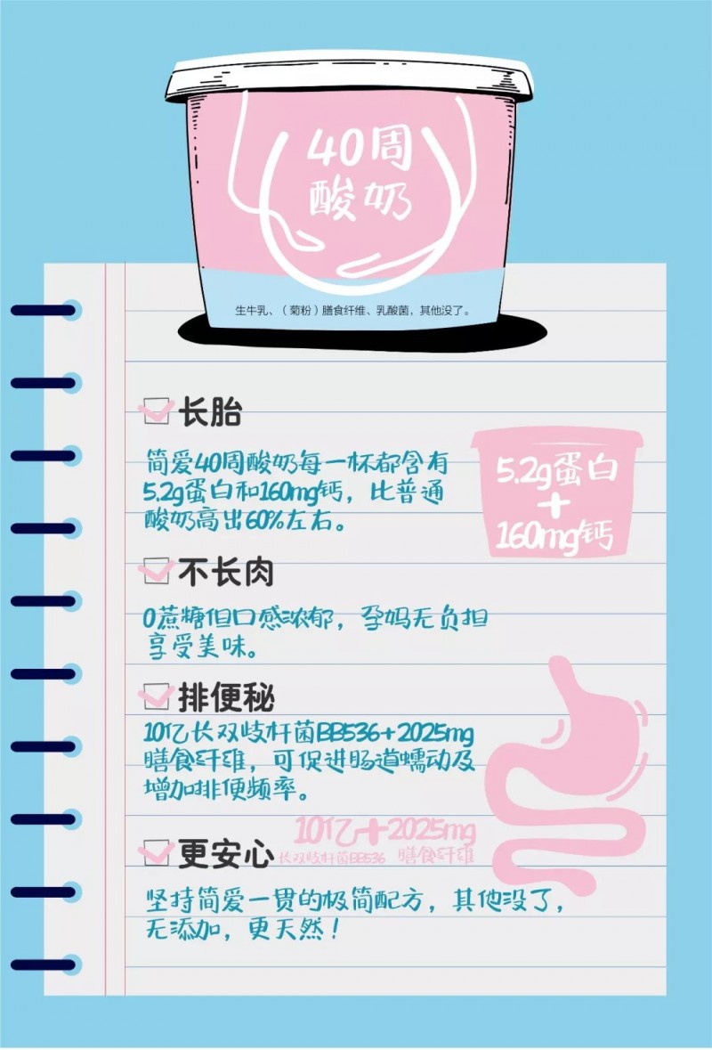 一边心疼着急,一边把问题都记在小本本上的之老板和他的研发团队,用最快的速度和最高的品质做出了这款简爱40周酸奶,专为孕妈而生,为人生最重要的40周保驾护航。