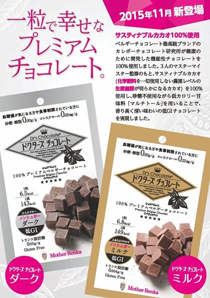 日本DR'S CHOCOLATE以健康零嘴为理念,减少零食中所含的卡路里,低GI、无麸质,降低吃零食时的罪恶感。手工制作而成,完全不同于以往低卡路里的食物,不但口感丰富,可以降低血糖值,调整肠胃。