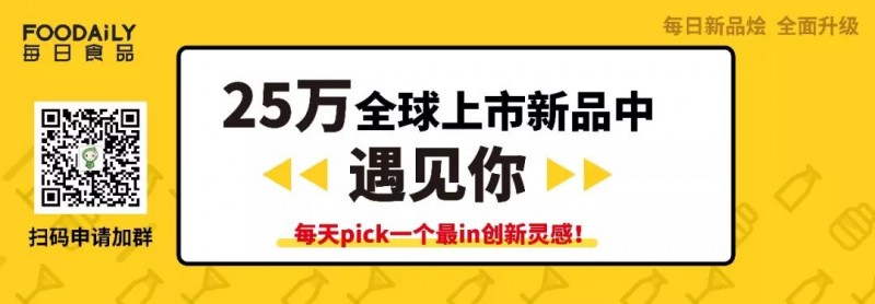 Foodaily 「每日新品烩」社群已成立,严选25万全球上市新品,每天pick一个最in创新灵感。添加Cherry微信(18261804307)申请入群,添加时需注明“公司+姓名”。