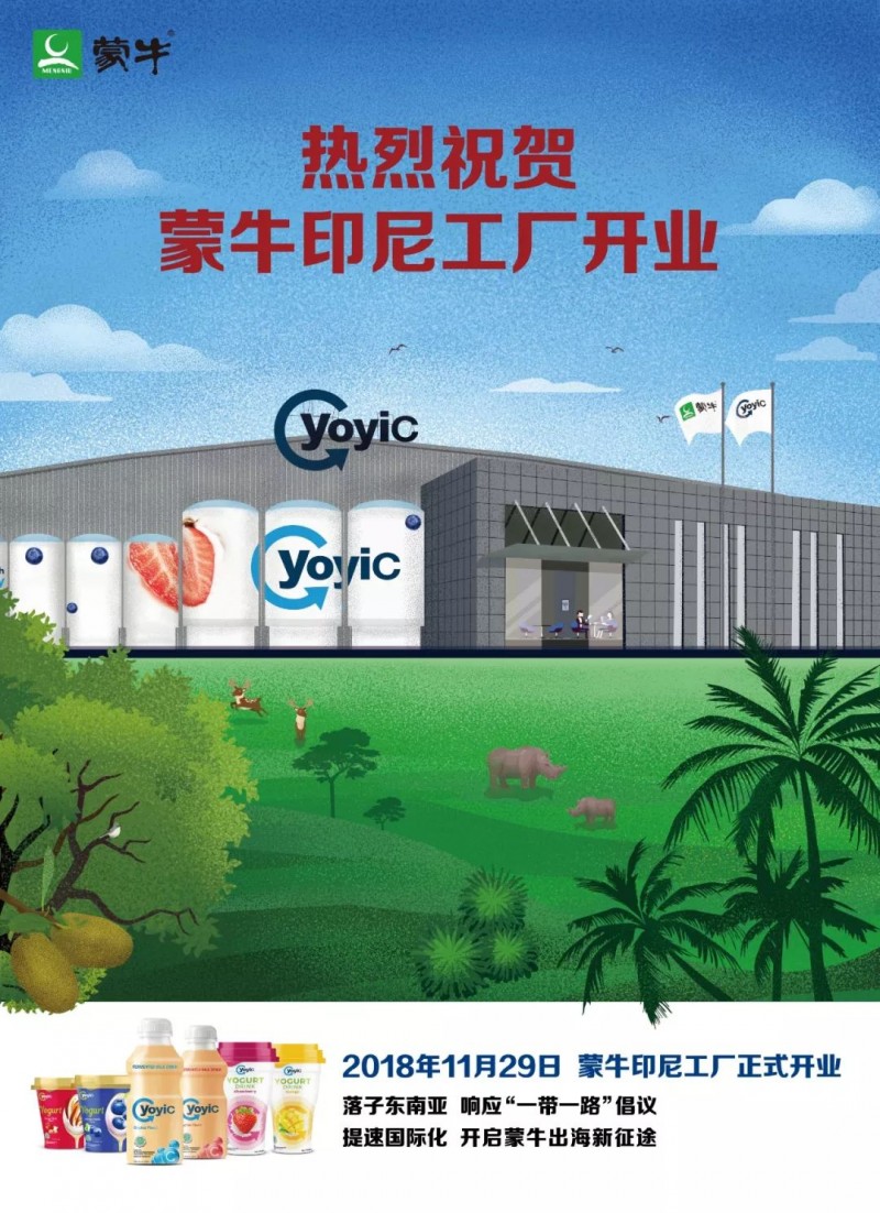 11月29日,坐落于印度尼西亚西爪哇省芝卡郎(Cikarang)的蒙牛YoyiC工厂正式开业,这是中国乳品企业在东南亚建设的第一家工厂。印尼投资协调委员会副主席Farah Indriani、印尼农业部部长助理Ferial Lubis、中国驻印尼大使馆公使衔参赞王立平、印尼中华总商会总主席纪辉琦、执行主席张锦雄、蒙牛集团CEO卢敏放等共同为工厂和即将上市的YoyiC系列产品揭幕。印尼投资协调委员会主席Thomas Lembong到场祝贺并视察工厂。