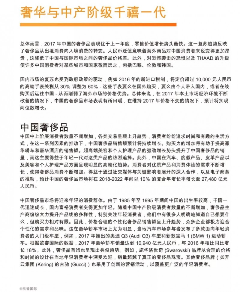 “中国奢侈品市场预计将在2022年实现10%的年均复合增长率(CAGR)达到4,157.8亿美元,中国奢侈品市场正在迎合更年轻的消费群体。”欧睿上海公司的研究分析师 Stephanie Yao 表示: “各大奢侈品生产商致力于丰富各自的产品线,为年轻消费者设计更优质、个性化更强、价格更合理的产品,以满足他们独特的个人需求和口味。”