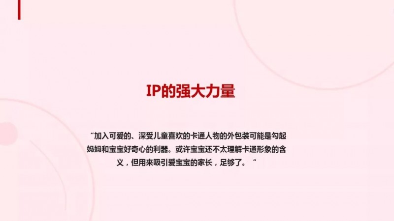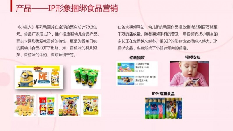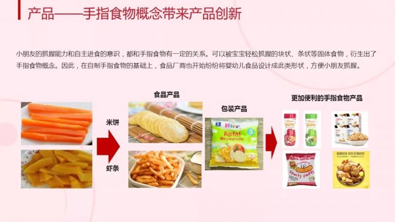 IP形象捆绑食品开展营销和“手指食物”概念的诞生也是目前婴幼儿食品品牌商进行产品创新时可借鉴的两个方向。动画IP结合的食品营销以及方便小朋友抓握的“手指食物,正在被越来越多的家庭接受,受到新一代婴幼儿、小朋友的喜爱。